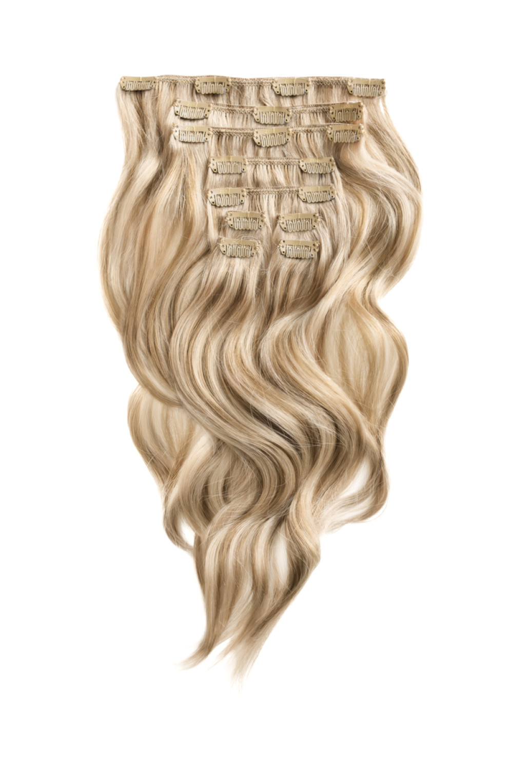 Clip in vlasy z pravých lidských vlasů v elegantním v melíru ledová blond a střední blond. Tato 9dílná sada o délce 45 cm a hmotnosti 100 gramů je ideální volbou pro ženy, které chtějí rychle a jednoduše získat objemnější a delší vlasy bez návštěvy kadeřníka.