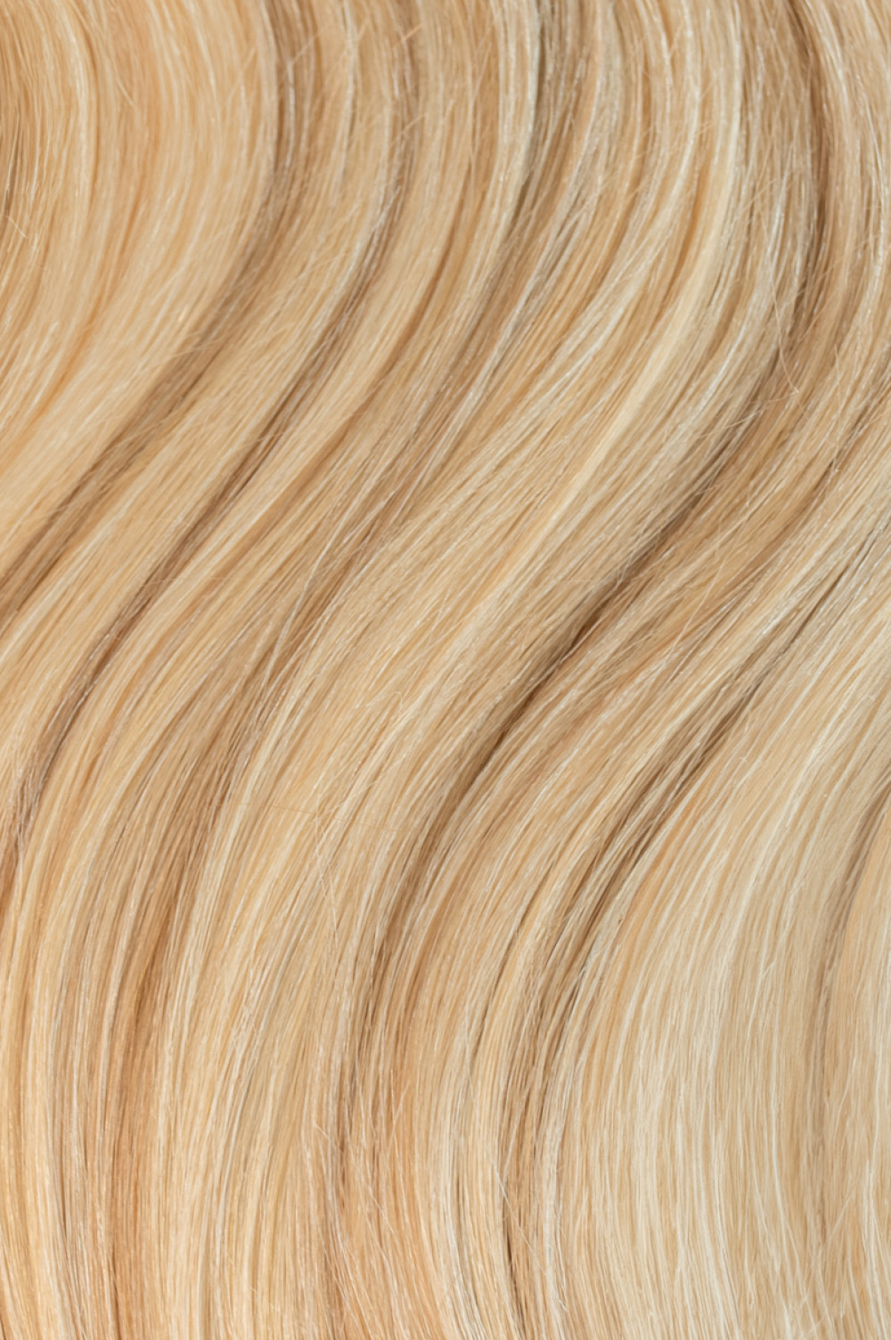 Clip in vlasy z pravých lidských vlasů v elegantní v melíru ledová blond a zlatá perleť. Tato 9dílná sada o délce 45 cm a hmotnosti 100 gramů je ideální volbou pro ženy, které chtějí rychle a jednoduše získat objemnější a delší vlasy bez návštěvy kadeřníka.