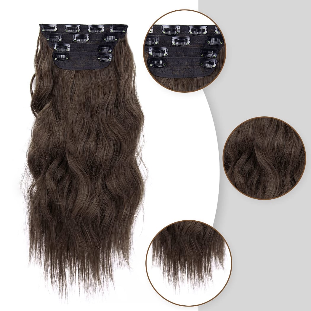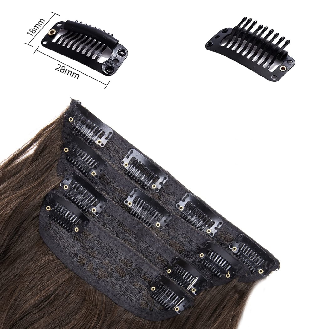 Clip in prodloužení vlasů - sada 4 ks v hnědém odstínu 8/10.