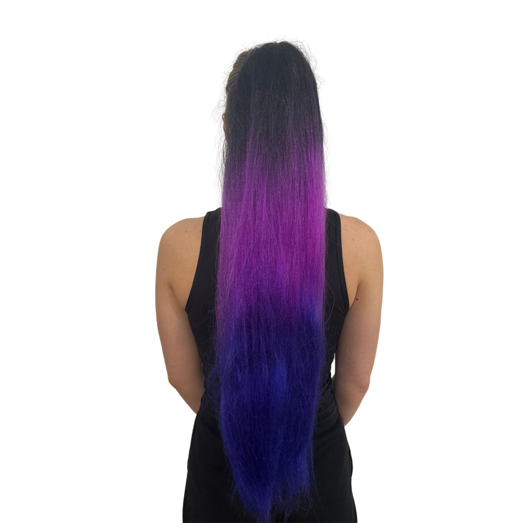 Trendy Ponytail 70 cm – ombré černá s fialovou duhou je víc než doplněk. Je to výzva být jiná, barevná, nezapomenutelná. Získej look, který si ostatní budou pamatovat. Protože když jdeš naplno, jdeš se vším – včetně vlasů.