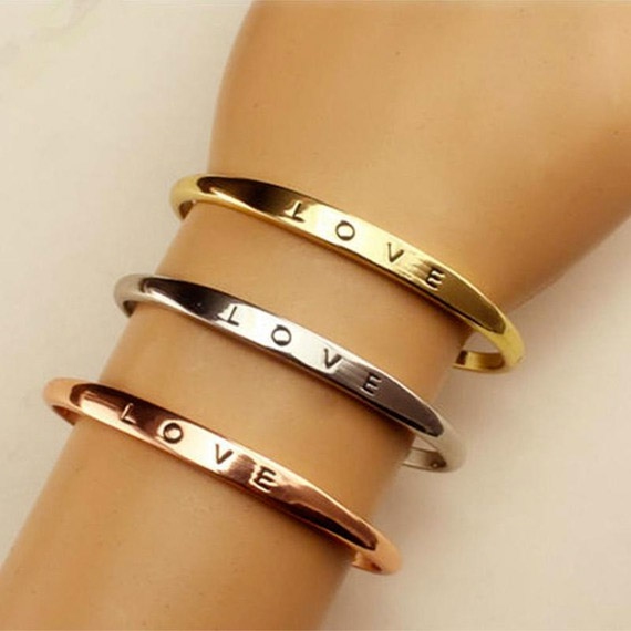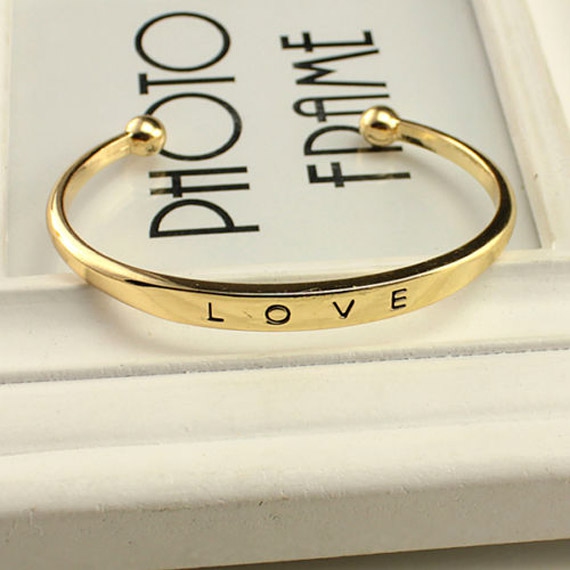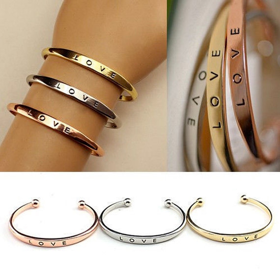 Moderní kovový náramek s nápisem LOVE ve 3 barvách.