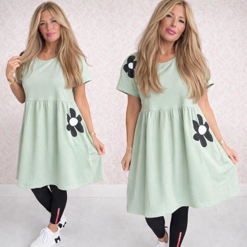 Super bavlněná šatovka s květy rozloženými na přední straně.