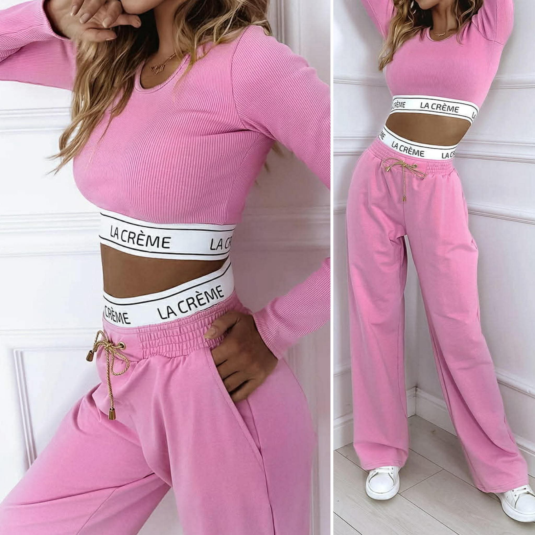 Dámský set s širokými kalhotami a crop topem LA CRÉMA