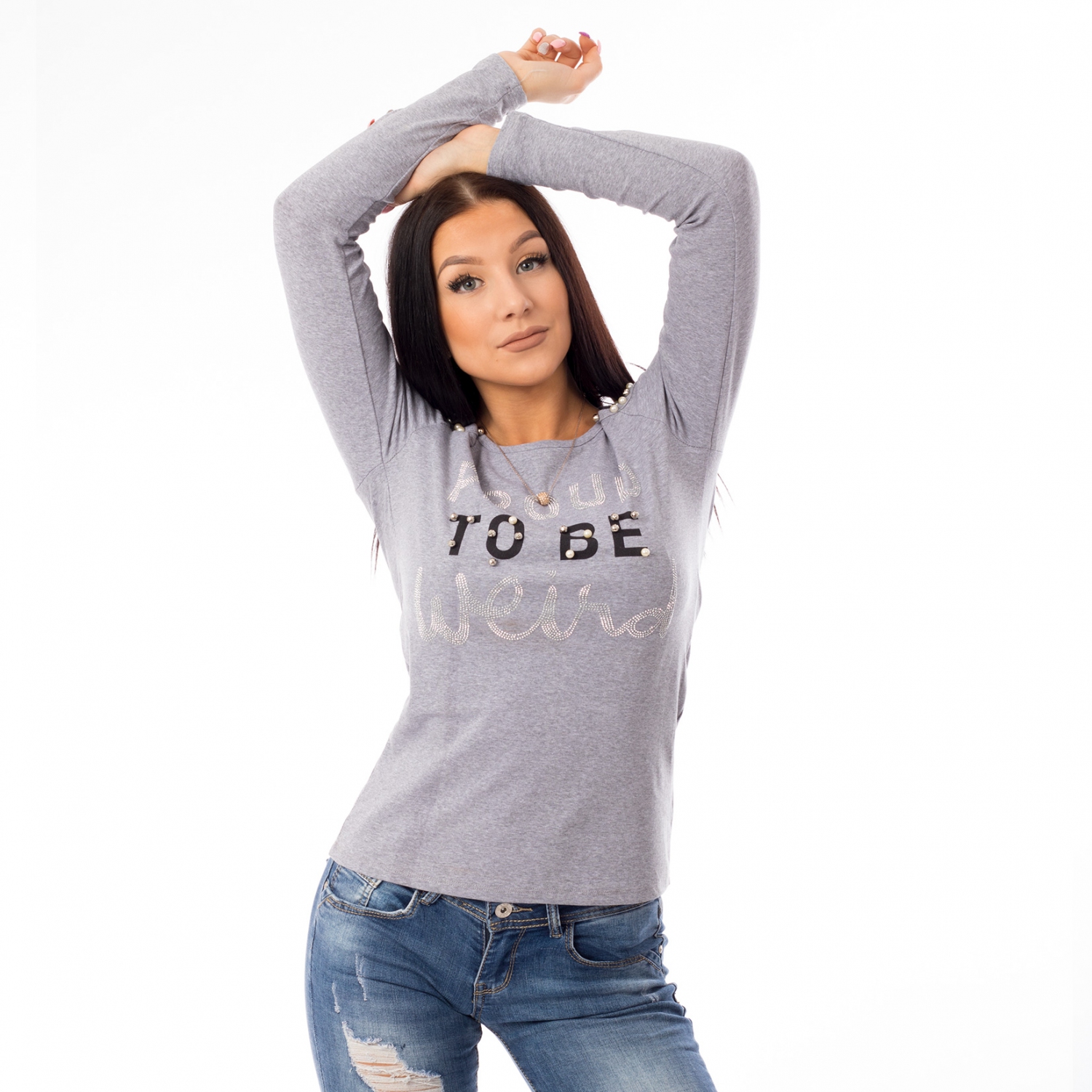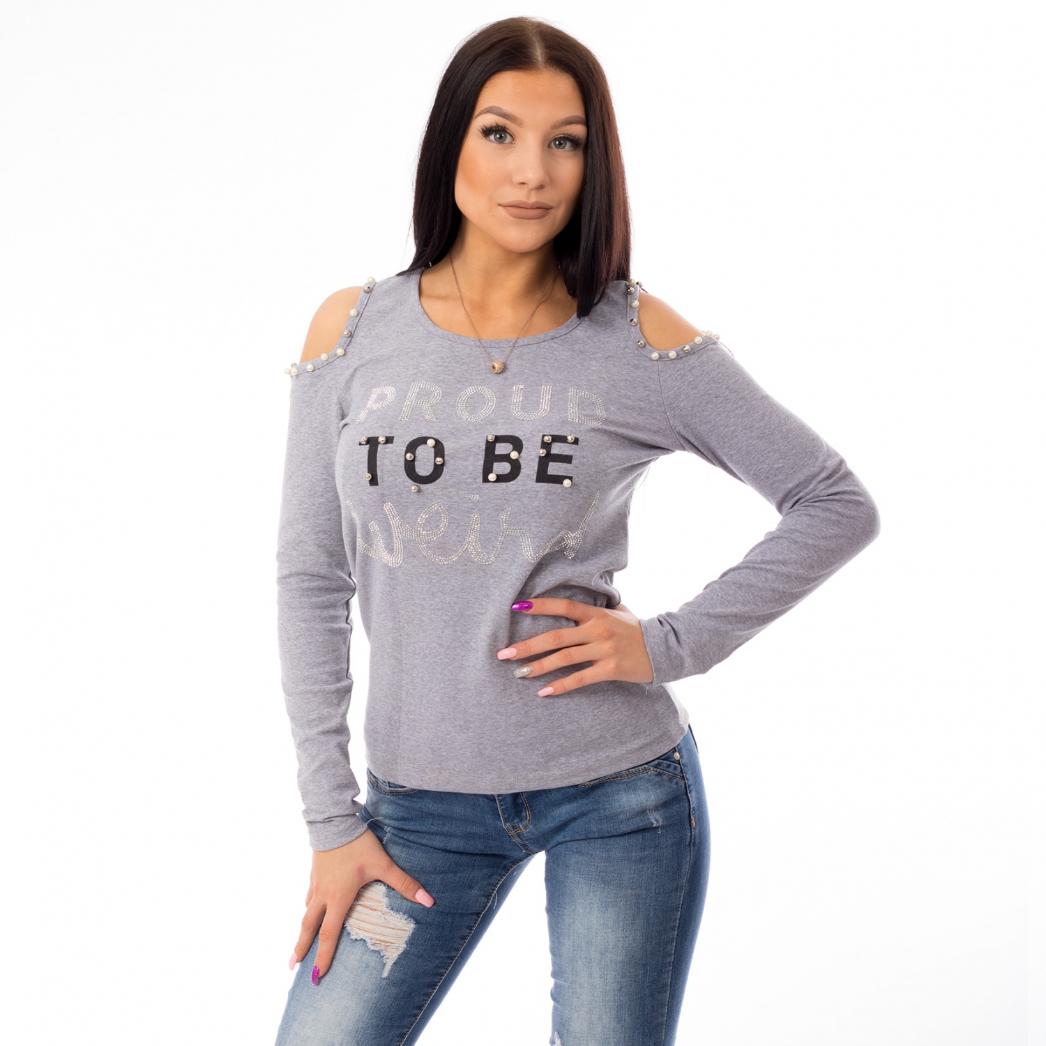 Halenku doplňují na ramenou průstřihy zdobené jemnými cvočky.
