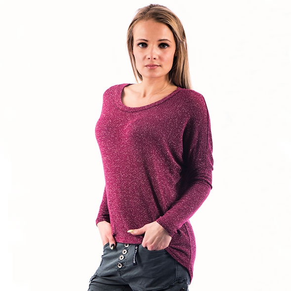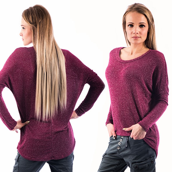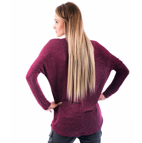 Tunika je univerzální kousek, který by neměl chybět v šatníku každé ženy. Tuto moderní vínovou halenku s glitry prostě musíte mít!