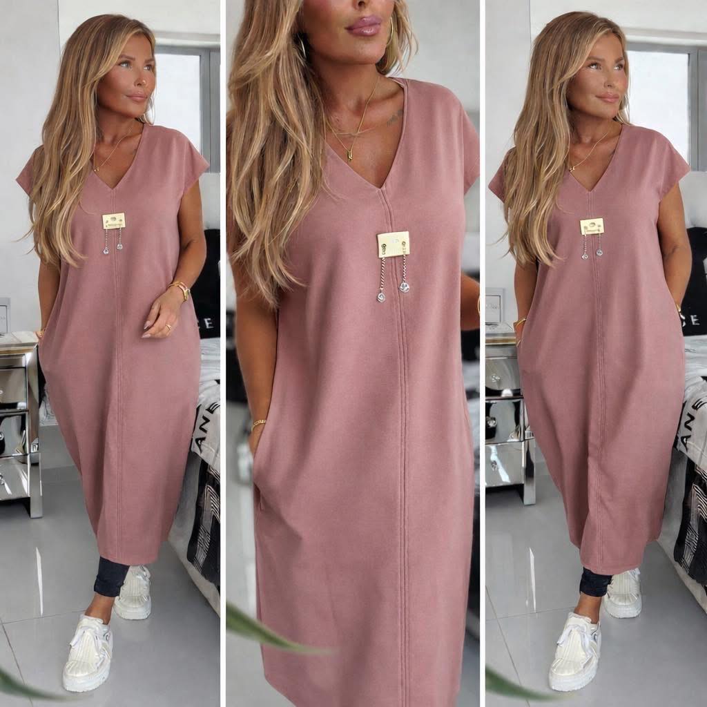 Dlouhá šatovka a plíškem a kapsami ve starorůžové barvě