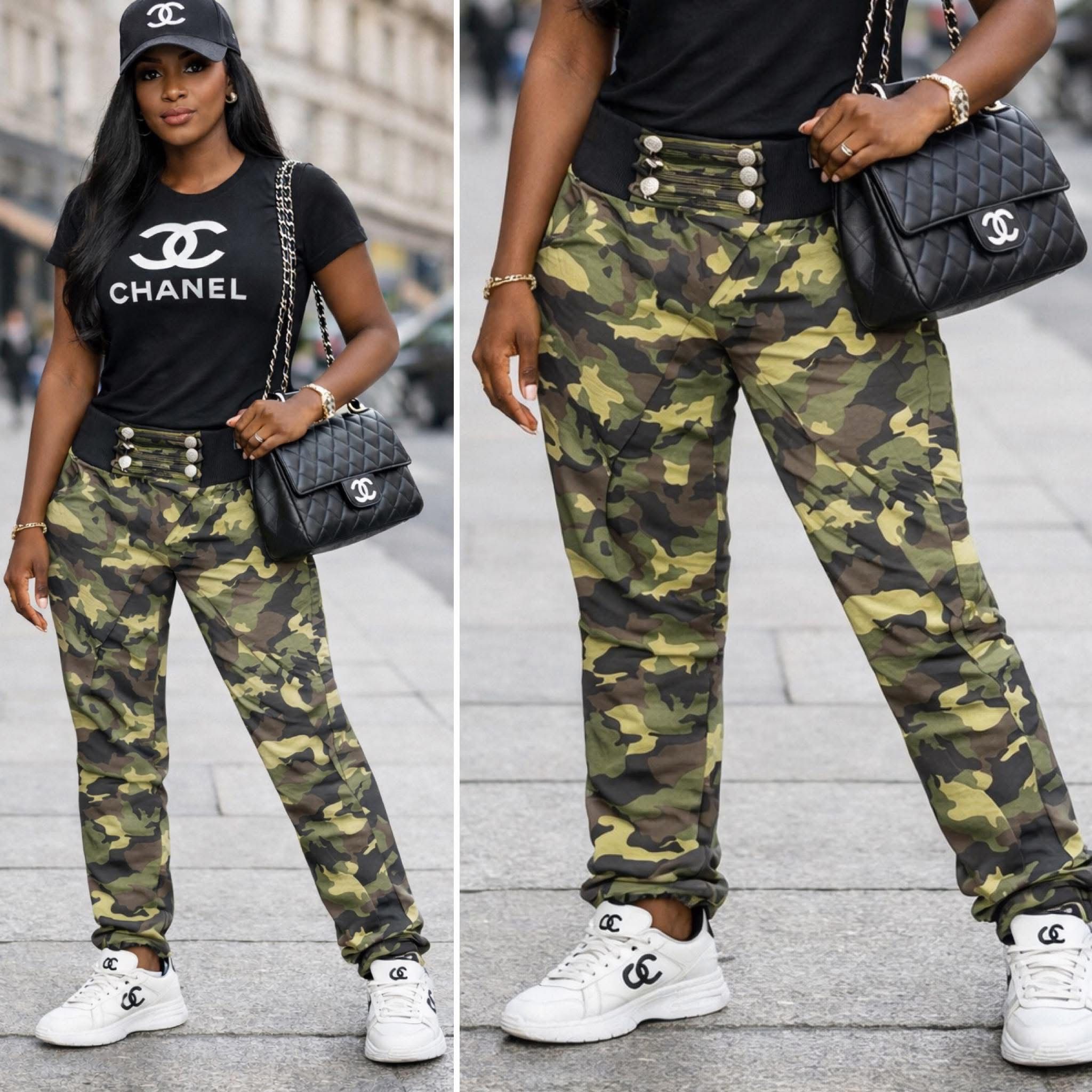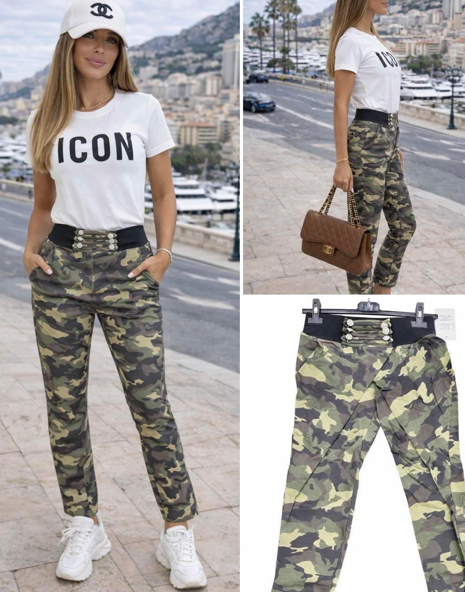Módní teplákové kalhoty pro vaše dokonalé pohodlí a styl, v zeleném maskáčovém odstínu.