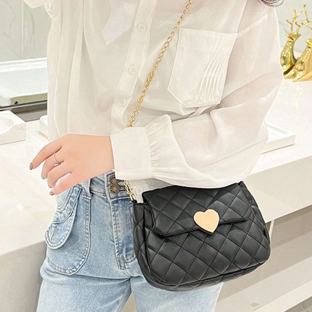 Nechte vyniknout vaše stylové já s naší kabelkou Heart, která je zároveň praktická a elegantní. Tato černá mini kabelka přes rameno s řetízkem je módním doplňkem pro každou ženu, která hledá dokonalou kombinaci stylu a funkčnosti.